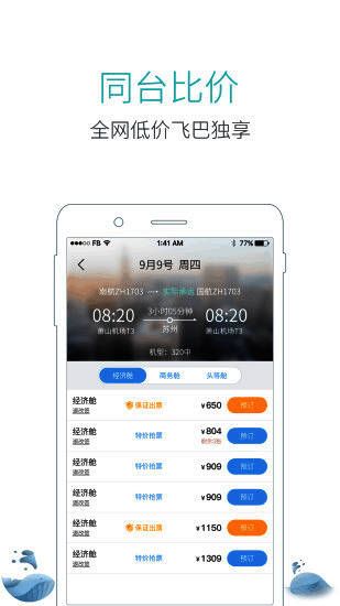 1、机票预定,快速搜索筛选意向航班,价格透明,界面简洁美观。