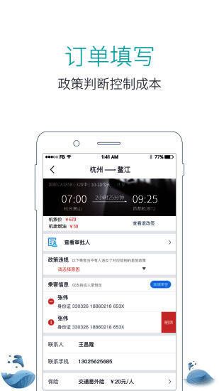 2、差旅管理,根据政策设置,为您选出政策范围内最低价机票,控制企业出行成本。