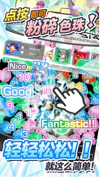 2、只要1次点按就可以连锁粉碎色珠。超华丽效果的粉碎技能、一发逆转的狂热模式等。