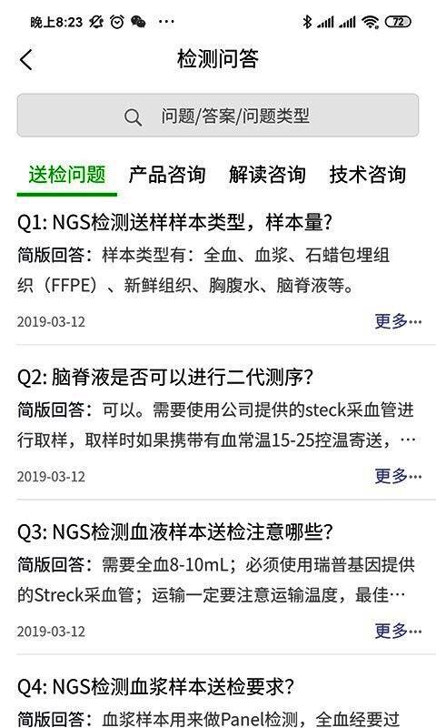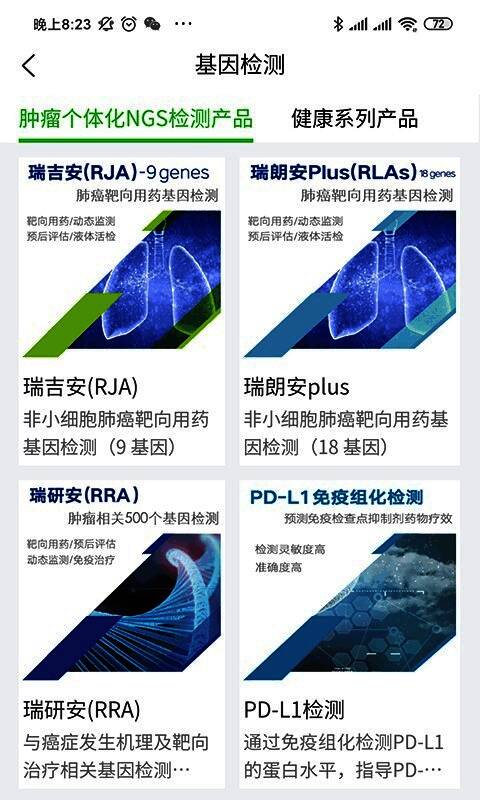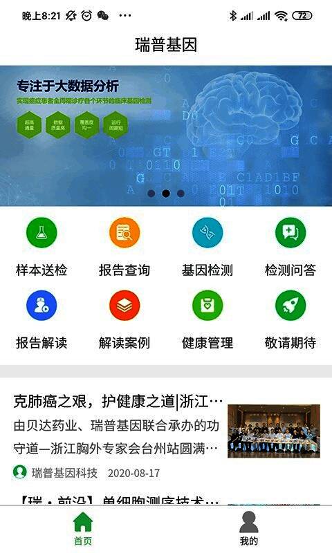 瑞普基因app为大家提供了基因检测服务,在线申请检测基因;提供了解读咨询服务,专属客服会耐心的回答您一切问题,让您更轻松的操作本款应用软件;同时,还可以线上添加基因样本信息,将样本录入,快速的检测基因;提供了多种检测产品,您可以自定义挑选需要的检测产品进行检测,轻松知道自己的基因检测报告,从中了解重要的基因内容;各种高风险的疾病都可以为您检测出来,让大家更多的管理自己的身体;支持用户自定义管理送检样本,添加、删除、查询等操作都可以,是一款很实用的健康类应用,欢迎感兴趣的朋友下载软件使用。