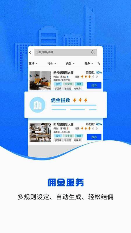 5、查看房地产的房源佣金,选择即可推荐;