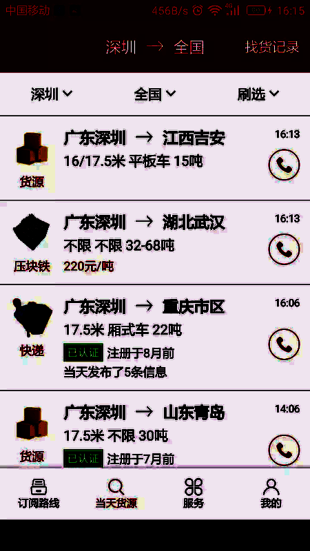 6、货主可以在线寻找货源,使用筛选方式可以快速找到合适货源。