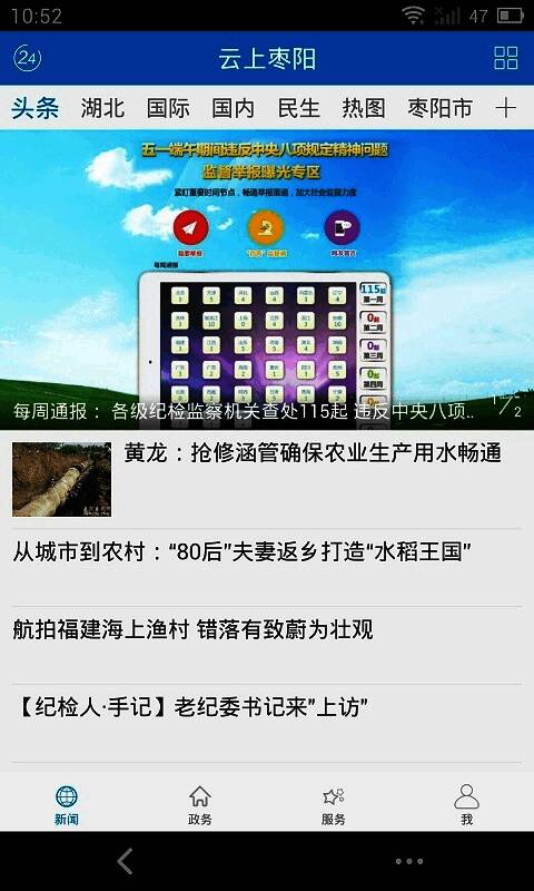 云上枣阳app是专门为湖北省枣阳当地所开发的一款服务软件,它主要是为人们整合湖北省内及枣阳市内的所有新闻、政务、服务等功能,让人们可以感受到更多权威的数据资源,此应用中汇聚有海量的热文头条信息,能够让你通过手机畅览天下大事小事,感受足不出户的掌中生活,而且在这里系统还推出有生活服务窗口,能够给予你众多的当地生活服务,如天气查询、电视频道、生活爆料、外卖美食、酒店预约、快递查询等等服务,非常便捷,有需要的朋友赶快来下载云上枣阳app进行安装使用吧。