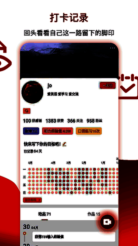 1、即学即拍,3万话题开口练,还有回复原视频、模仿原视频、自由拍摄等多种练习方式满足你;