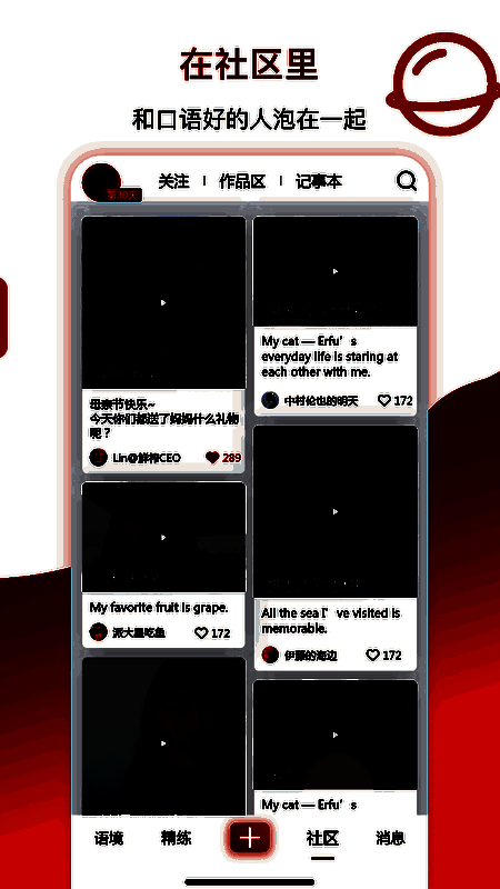 2、勇敢的分享你拍摄的练习作品,社区小伙伴们相互点评、互助鼓励,一起分享进步喜悦;