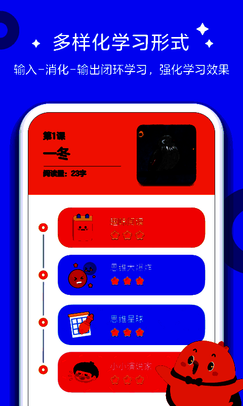 让儿童随时在线学习的手机软件,利用这款软件可以针对3至12岁的孩子快速在线培养多学科的综合能力。