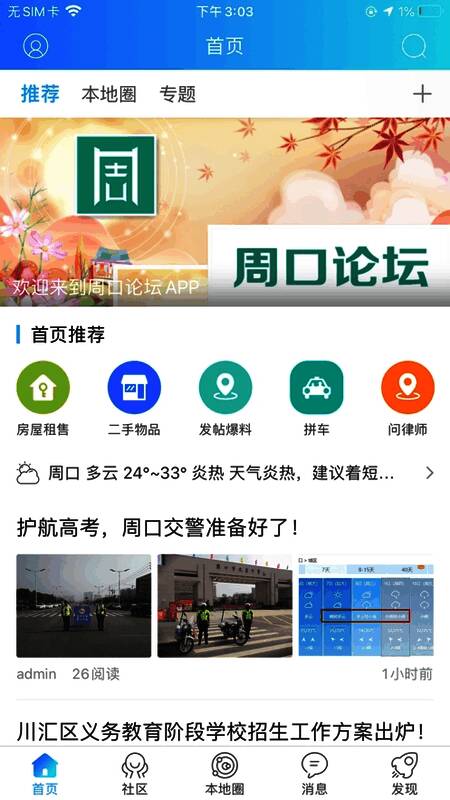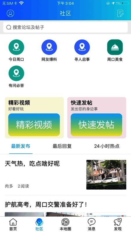 周口论坛分享周口本地美食、查找周口本地兼职工作、查询车辆违章、周口天气等内容,不仅能够第一时间了解身边的人和物,还可以随时随地查看本地大小新鲜事,现在参与周口同城交友活动,还能够帮你快速找到周口共同兴趣爱好的圈子,有需要的朋友欢迎下载体验。