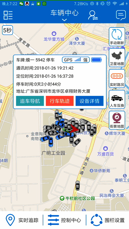 1、手动刷新当前车辆信息,使用手动刷新功能刷新页面的车辆信息并查看变动情况;