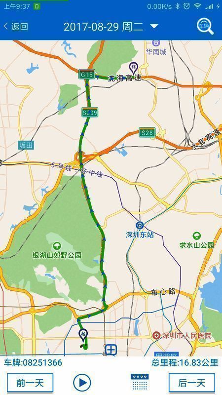 3、点击行车轨迹标签,进入行车轨迹查询页面并查看今天的轨迹情况;