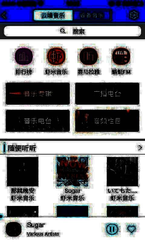 5、云端音乐和设备音乐进行播放时,可在搜索栏搜索和根据相关提示进行操作。