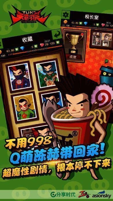 陈赫制作二次元PRG手游这次与大家相约,到贤合庄去搞火锅去咯!Q萌陈赫陪你一起狂欢;陈赫担任游戏制作人,亲自上阵,创新制作,开启二次元RPG手游新纪元!还在辛苦打怪,集齐卡牌?那就Out啦!二次元RPG手游《天霸学院》超魔性剧情,颠覆你的认知!全新进化的回合制战斗系统,酣畅淋漓的超能绝杀,炫酷特效引爆全场,根本停不下来!Q萌多样的奇葩角色让你爱!爱!爱不完!小游戏元素与养成的完美融合让你欲罢不能。打地鼠,天天消除,无尽之塔,诡异闯关、探索解谜、百种元素,乐趣无穷,丰富的技能和真实的打击感会给你带来爽快的操作体验和强烈的视觉冲击。经历梦境与现实的交错重叠,揭秘危机背后的最终真相!快和天才一起战斗吧!