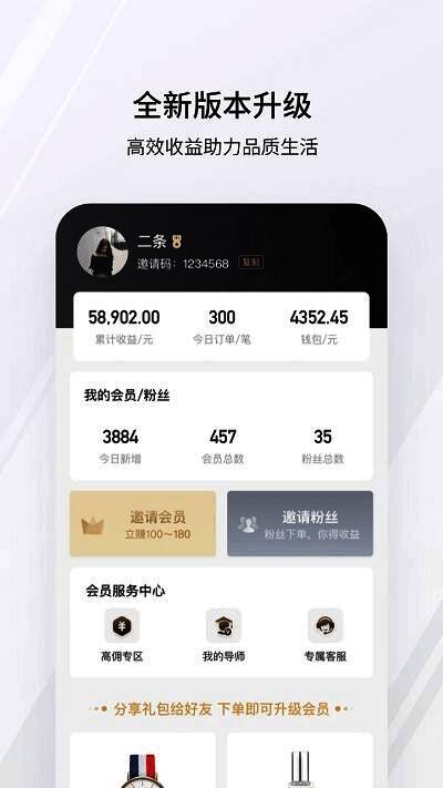 2、个人中心,这里有自己的消费状况与收益明细,帮助大家查清交易往来。