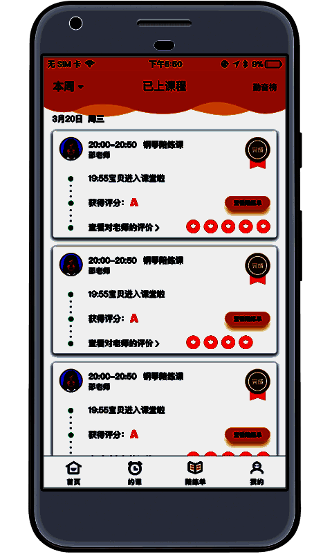 金牌陪练教师端是一款主要致力于培养学生的乐器使用能力的教育学习软件,在这里,有很多专业的乐器老师在线教导孩子的学习,让孩子能够快速的学好乐器。在该平台上,用户可以直接受到各种乐器老师的信息,包括钢琴老师、古筝老师、手风琴老师、小提琴老师等,不管是用户想学什么乐器,都可以在平台搜索乐器名称,便可以看到相应的老师,跟着老师练习即可;用户可以看到老师的详细信息,查看其获得的评分,查看别人对该老师的评价,别人的评价一般都是自己感受到的真实情况,根据评价可以择优选择自己喜欢的老师。