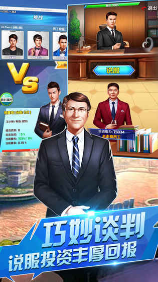 《创业合伙人》是一款可以让你体验从穷小子走上人生巅峰的创业题材模拟经营类手游,玩家将见证商场上的硝烟,体验步步惊心的投资过程,还有美女总裁,上层名媛等你来邂逅,你还在犹豫什么?