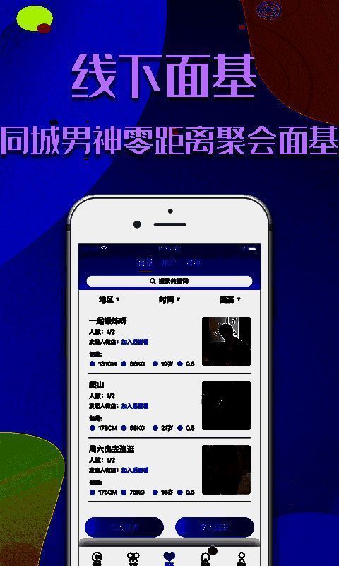 新基地app是一款同城男性交友平台。所有用户基于用户精准的定位,你可以发现各个地区志趣相投的伙伴,也可以选择同城交友,查看他们的个人资料,一键喜欢,同城线下面基,感兴趣的朋友点击下载吧。