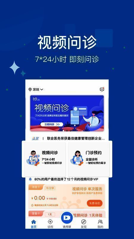 联合医务是一款线上问诊服务的平台,采用视频的问诊方式,能够为患者提供了便捷的就医服务,线上一对一就诊,足不出户即可接受就诊,与医生视频交流,能够提高就诊的效率,有任何疑问还能咨询医生,随时随地提问,总有权威医生问你解答;联合医务app提供了健康套餐卡服务,实时浏览健康服务范围,立即点击购买,就能够快速购买到产品,线上和线下服务相结合,提供了一站式解决方案,让患者快速就诊,该应用还支持健康档案存管,帮助用户长期管理自己的健康档案,还支持送药服务,同城购药,送药上门。