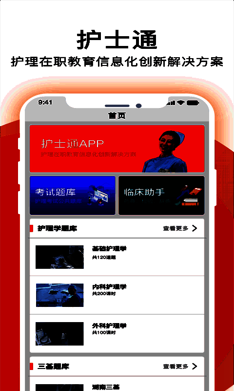 护士通是一款面向医院护理人员的APP,提供的学习资源都可以有效提高护理人员的能力,提升自己的职业技能,帮助自己成为专业的护理人员,丰富的学习资源,专业的教学指导,帮助你快速提升能力,掌握更多专业知识,课程中心为你提供了最全面、最专业的学习资源,为你打造一个专业的学习平台,轻松提高自己的能力,拥有海量题库,根据自己的学习进度选择,进行练习,可以巩固自己所学的知识点,所有的错题都可以收集在一起,反复练习,掌握重要的知识点。