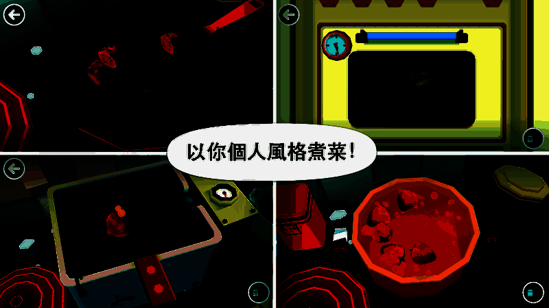 共有五种不同的厨具可供选择,让你能够做出趣味美食!选择你最喜欢的食材,加入一些“奇材”,最后再来一点“怪料”。现在该让你的客人尝尝鲜啦!有没有冠军相?