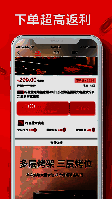 2、下单返利提现:完成订单后,会有返利给到您,可以快捷提现到支付宝,想要购物的你可以更多选择的机会;
