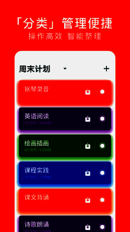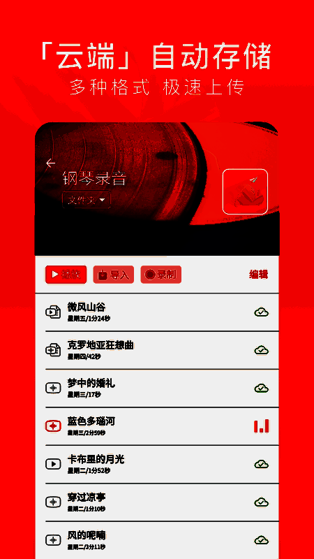 一步云app是一款十分好用的音视频录制工具,钢琴录音、英语阅读录音、语文背诵、诗歌朗诵等,全都可以个性化录制,并且还能保留视频画面,轻松记录下珍贵的瞬间,将其珍藏在云端;在使用app进行音视频录制的时候,自定义添加合适的分类标签,这样就能精准寻找到自己录制保存的云端视频;在想要观看视频或收听音频的时候,进行云端预览查看即可,完全不需要将其缓存到手机本地。