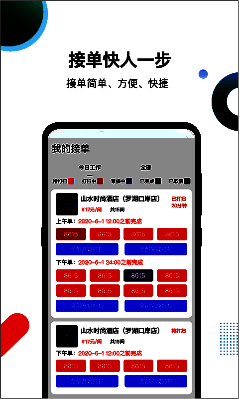 3、点击抢单,只要速度快即可抢到好的清扫订单;