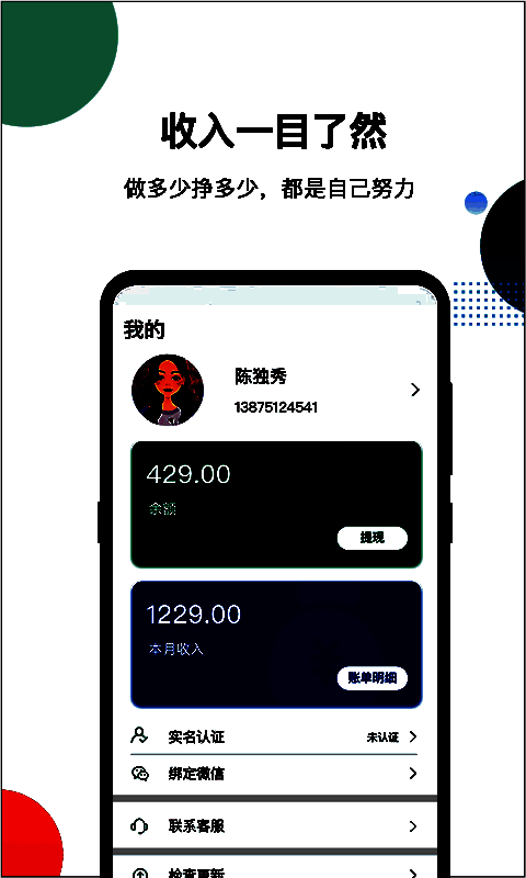 在此可以直接绑定自己的微信账号,绑定微信之后即可方便用户随时提现;