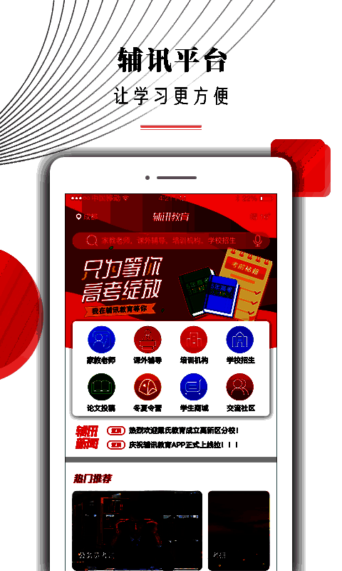 辅讯教育是一款手机线上教育应用软件,软件帮助中小学学生进行课外辅导,解决学习上的难点,在这款软件中用户们可以看见各门科目的名师讲堂视频,同时我们还可以向老师在线提出自己不会的或者是有疑惑的问题,当场进行解决不会存在拖拉现象,学生还可以在论坛里面互相交流学习经验,辅讯教育专注提高孩子成绩。