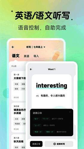 百晓松学习的一大亮点在于其听写功能,用户可以在应用中直接进行中文或英文听写训练,通过反复练习加深记忆。此外,软件还支持语音密码设置,允许用户通过语音指令控制播放内容,极大提升了使用的便捷性与趣味性。