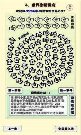 第二类,拥有无限事件id(无限主/支线)的超级模式,该模式下的每个事件均可独立挂载3个单选项,且可为选项们添加独立的属性判断准入条件(有脑洞一切皆有可能)!每个事件可独立实现对四大属性的变动(可加减浮动或直接归零)!每个事件可独立实现对所有道具和称号的更改变动!