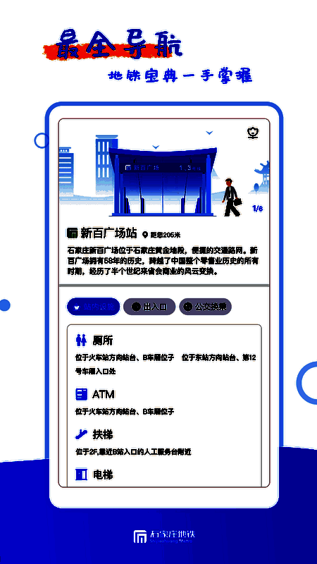 石家庄轨道交通app通过线路图,乘客可以了解地铁线路的走向;站点信息让乘客可以找到距离目的地最近的出站口;列车时刻表,也可以让每位乘客掌握列车的收发时间,提前安排出行计划。石家庄轨道交通app中的便民服务,目前主要功能是为地铁乘客提供失物招领服务。为每位乘客在丢失物品或捡到物品后,提供一个沟通的平台。