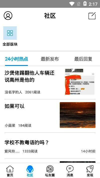 4、选择阅览板块分类,就能快速阅览到圈子;
