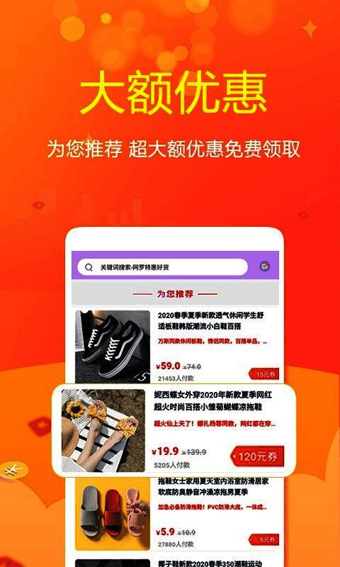 2、为您推荐:精选推荐各种大额高额优惠商品,每天都可以领取大额优惠券。
