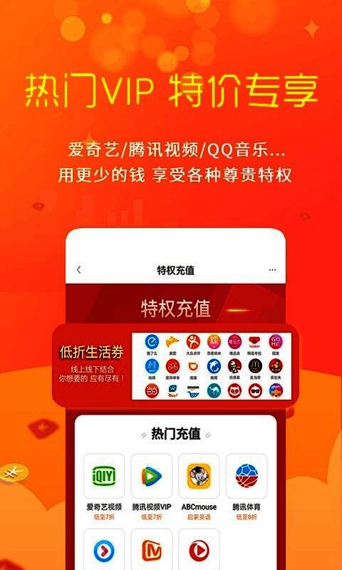 还能查看平台提供的各种热门充值特权,通过平台进行充值可以得到更多折扣;