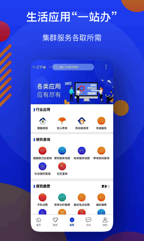 生活应用一键办。《辽事通》是一款专门为辽宁量身打造的生活服务软件。在辽事通软件内,拥有着丰富的生活服务功能,各种类型的服务功能,涵盖了吃喝玩乐,衣食住行等等生活中的方方面面的服务功能。用户们可以在线轻松的办理各种生活事项的费用缴纳,以及线下事项的预约,帮你轻松省去排队时间。
