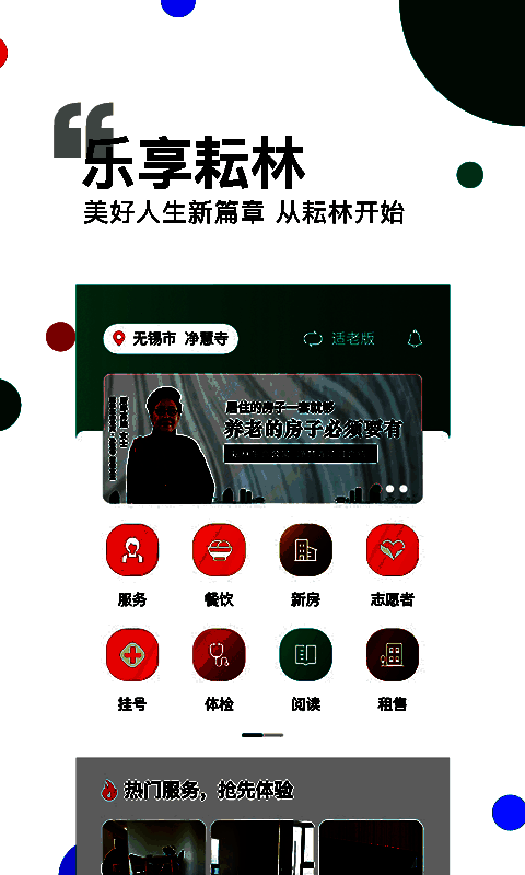 乐享耘林致力于提供居家养老服务的平台,应用的服务包含了餐饮、新房、志愿者、挂号、体检、阅读、租售等服务,覆盖了生活的各个方面,享受高品质的生活服务,这里还有热门服务推荐,优先体验到极致生活,需要什么服务即可直接搜索或选择服务,线上即可完成报修、业务办理、生活缴费、消费购物等需求,解决线下办理业务的时间,同时还能让服务变得更专业,乐享耘林手机版为长者推送生活资讯,轻松享受健康养生、旅游出行方案等资讯,提高对于健康的认知,实时参与社区活动,让生活更精彩。