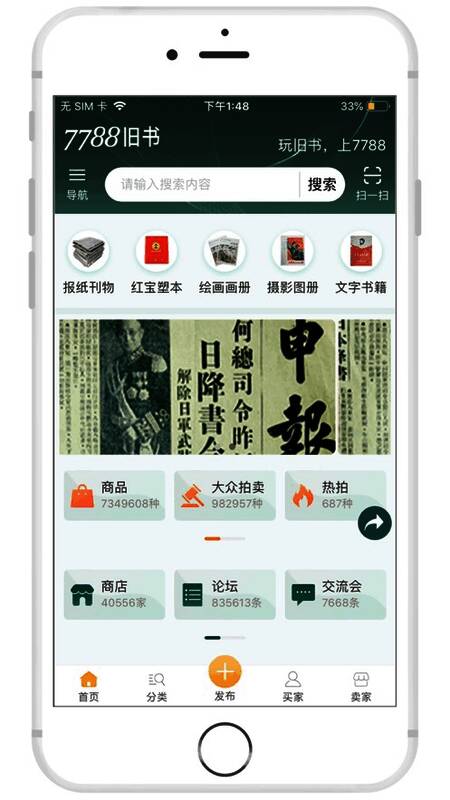 788旧书APP这里的古物非常的多,各种不同类型的古物在这里都能够看见,很多有收藏价值的商品在这里都会有拍卖,保证购买的人多,在这里还能够经常的捡漏,对于很多喜欢收藏的人来说都会有很不一样的收获。