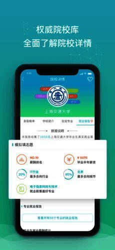 各院校历年专业录取详细数据,一键智能填报并生成志愿表,独家就业数据智能分析等等。