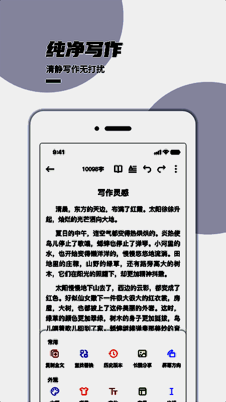 软件整体UI风格简洁明了,没有多余广告干扰,真正做到“纯净写作”。无论是新手还是资深作家,都能快速适应其操作逻辑,享受顺畅无阻的创作过程。
