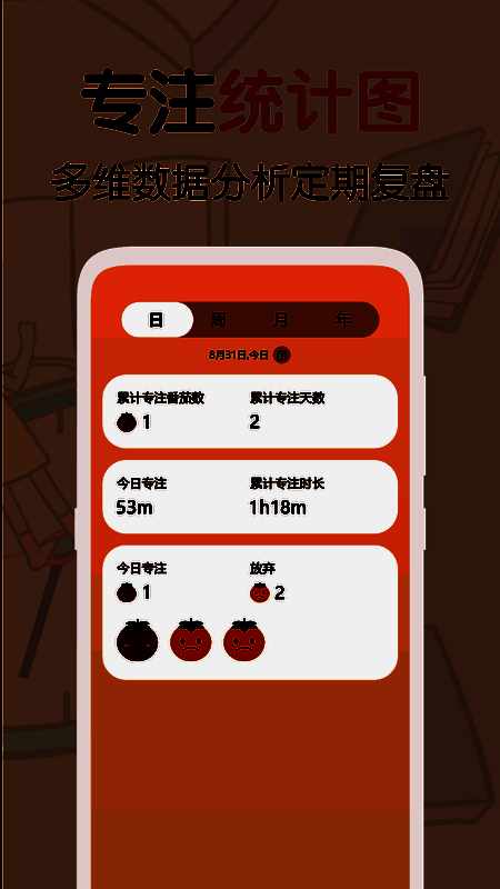 除了基础的专注倒计时功能外,《我的番茄》还提供详细的统计报告系统。无论是每日、每周还是年度进度,用户都能清晰查看自己的计划完成率和时间分布情况。这一功能不仅有助于总结阶段性成果,还能激励用户持续优化时间管理策略。