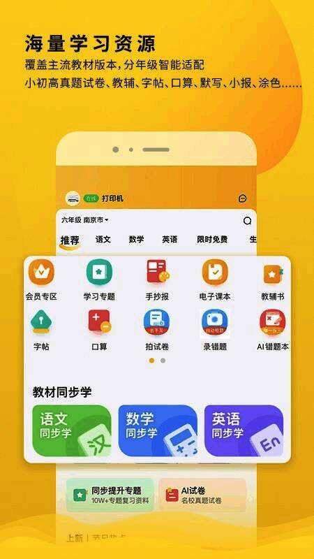 无论是小学、初中还是高中阶段,用户都可以快速找到对应学习材料,并直接通过手机完成打印,省去繁琐传输步骤,节省时间成本。