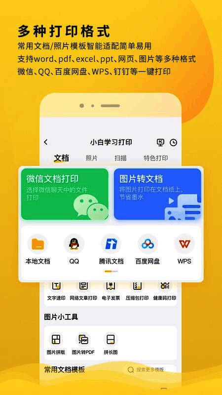 该软件不仅支持主流品牌的WiFi打印机,还兼容Word、PPT、Excel、PDF、图片等多种文件格式,用户只需几步操作即可完成打印任务。同时,内置的智能图像识别系统能够对拍摄文档进行梯度校正,还原真实纸质效果,提升打印质量。