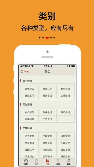 3、阅读界面友好,多种调节,记忆阅读,智能推荐,左右滑动翻页,封面精美;