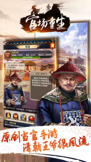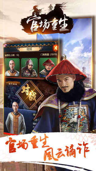 《官场重生》是一款原创当官主题的角色扮演手游,玩家将穿越到清朝,做一个风流王爷,开始你精彩的人生,好玩不累,美女如云,多重玩法系统等你来一一体验,快来下载吧!