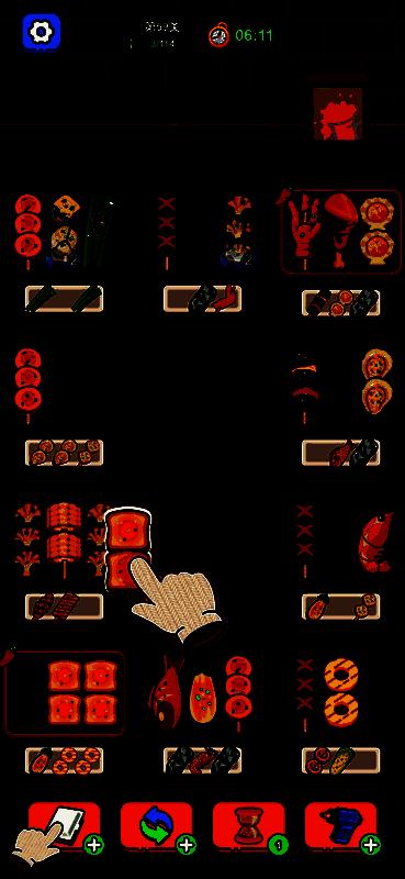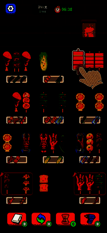 此外,游戏中还隐藏了一个有趣的消除机制:当三根相同的烤串连在一起时,它们将自动消失并触发成就反馈,为整个游戏过程增添了一份惊喜与满足感。