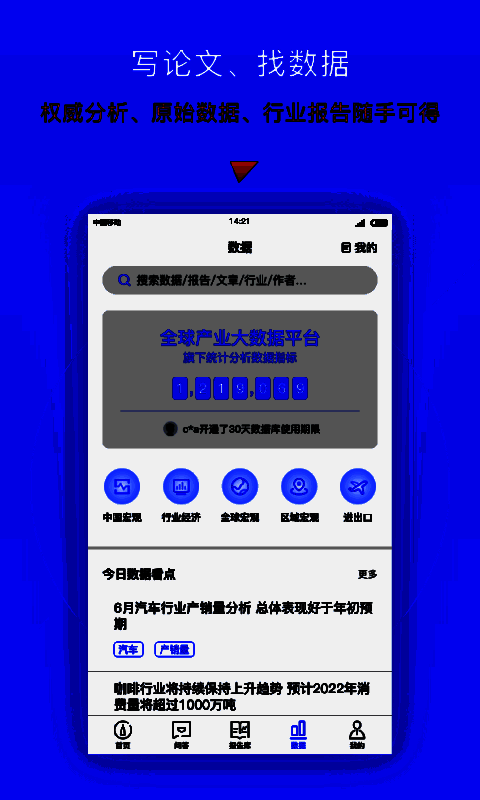 提供全球100000+行业数据可视、1000000+产业资讯追踪,用户可以自主调用数据库数据,洞察产业发展现状和未来。