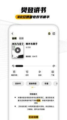 樊登读书是一款专业的阅读手机app。各种名人大师,为你提供最新的阅读见解;各种精品书籍推荐和书籍详解,帮助你养成良好的阅读习惯。樊登读书,是你读书的首选。樊登大师为您颠覆传统阅读体验,强力打造立体阅读感受!子书应有尽有,看书、听书、视频随心选,还有大师为你解读