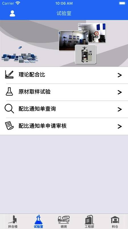 2、智慧西延实验室里面有理论配合比,原材取样,配比通知单查询,配比通知单审核等模块;