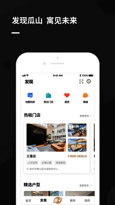 瓜山未来社区app是杭州拱墅区瓜山社区最新的“未来社区”试点项目的官方app,这个由朗诗寓打造的“未来社区”主要针对80、90及00后的年轻人,通过这款瓜山未来社区app你可以查看瓜山未来社区的所有在租公寓信息,已经入住的租户也可以查看社区的各种活动项目,还能跟同社区的年轻人一起交盆友。