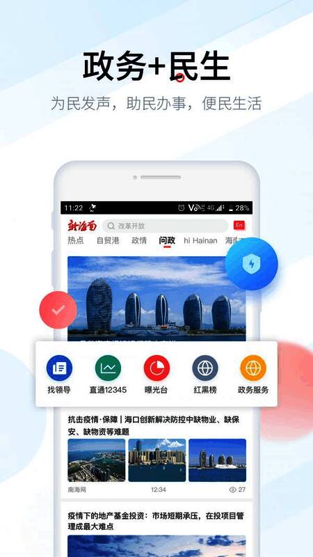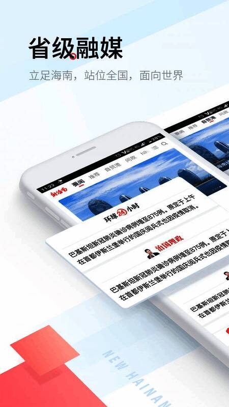 新海南app用户可以在平台里查阅关于海南的新闻资讯内容,带来的是非常丰富的新闻内容,用户需要的新闻,这里都有,用户可以随时随地在线上进行阅读,非常的便捷。专门为生活在海南的用户们打造的,这里可以让用户了解关于海南的一切新闻。会实时更新新闻资讯,让你可以一手掌握海南新闻。提供的是各个方面的新闻资讯,十分丰富,详细的新闻资讯,更好的了解自己身边的大小事。每天还会提供电视新闻直播内容,可以随时在线上收看电视直播。