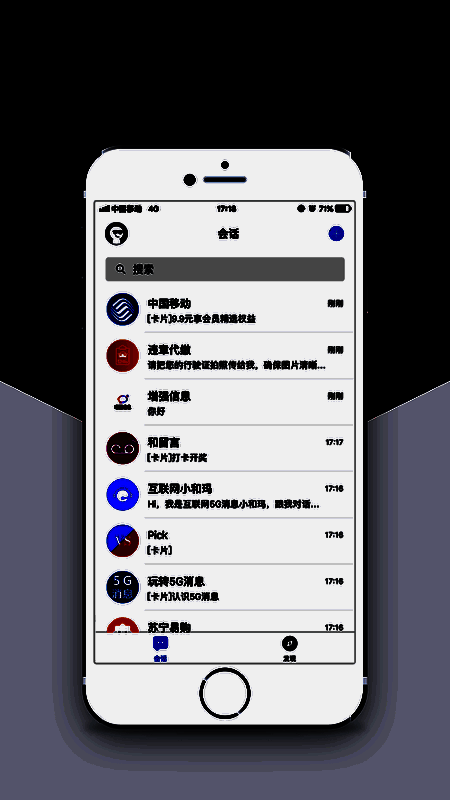 5G消息是一款即时通讯软件,个人和企业用户均可免费注册使用。提供了便捷的文字、音视频聊天功能。还可以在线组建群组聊天、分享文件资源、查询流量使用情况等等。实现了文、图、音视频、表情等的融合,能够不加好友就随时发起群发、群聊,甚至支持在线支付等功能。将为客户带来多媒体消息、商业类消息、智能化消息以及互动式服务、安全防伪等全新体验,实现“消息即服务“!